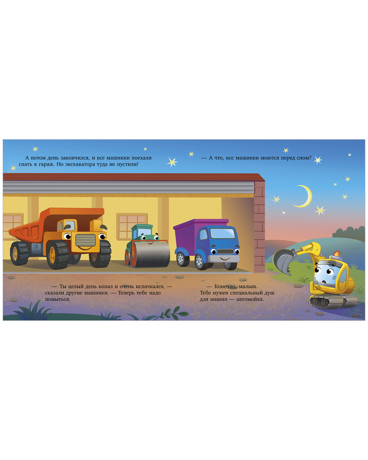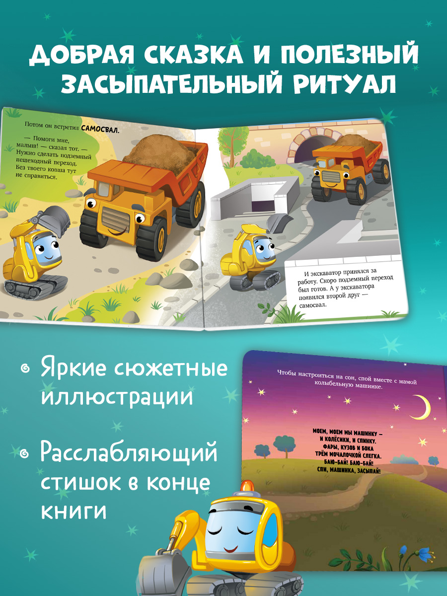 «Баю-бай, экскаватор» — добрая история для вечернего чтения с плотными картонными страничками и яркими сюжетными картинками. В конце книги вас ждет расслабляющий стишок для быстрого засыпания.