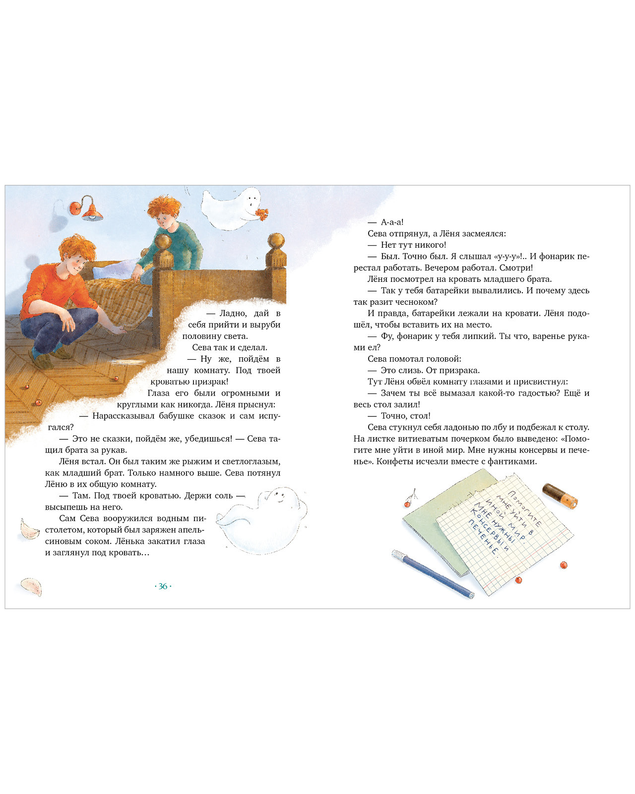 Остроумные иллюстрации Елизаветы Третьяковой, интересная история, крупный шрифт и комфортный объем текста делают книжку “По следам привидения” идеальной как для семейного, так и для самостоятельно чтения детей 6, 7, 8, 9 лет.