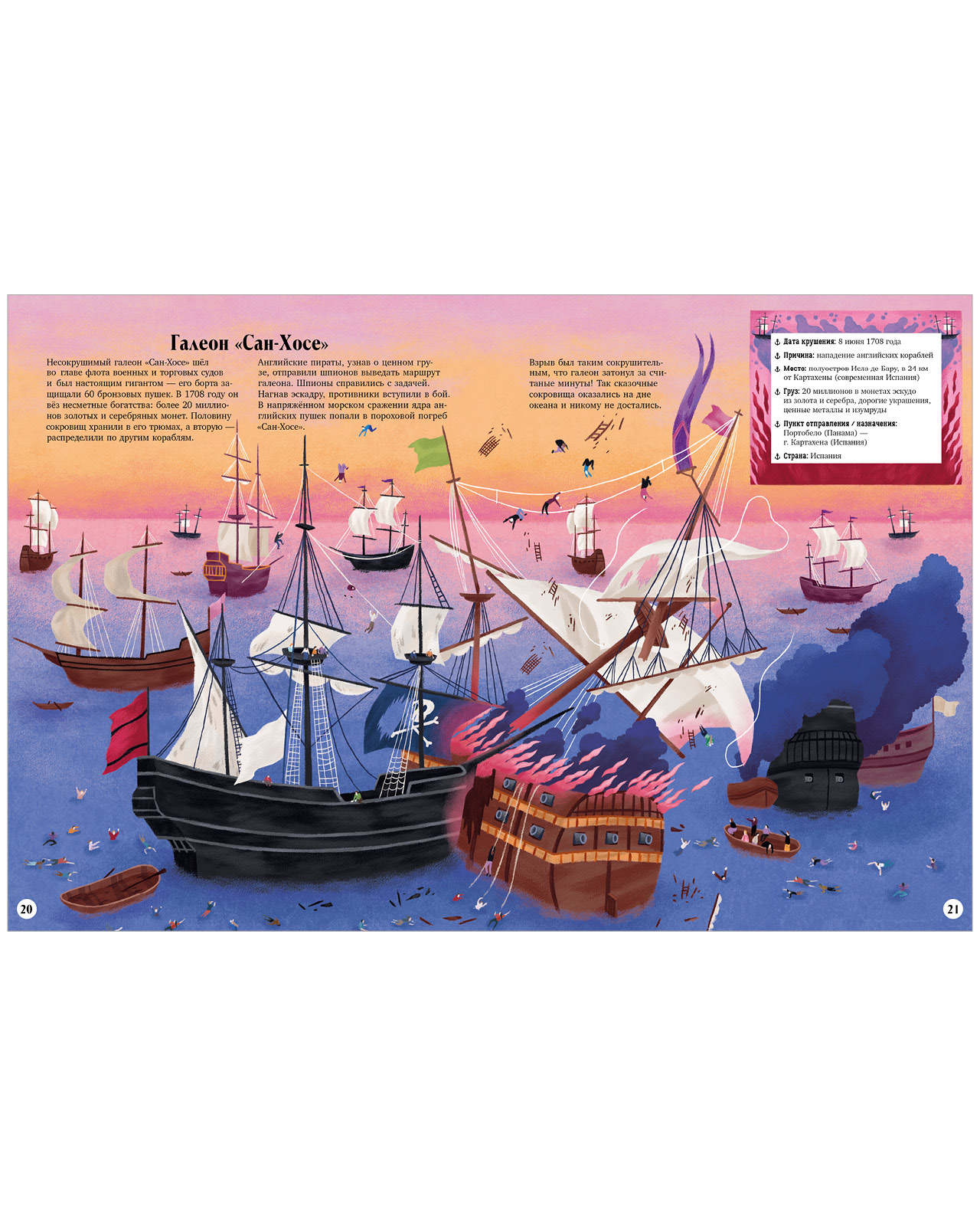 «Тайны затонувших кораблей. По следам пиратов в поисках сокровищ» — увлекательная и красочная книга энциклопедия кораблей. Вас ждет погружение в атмосферу прошедших эпох, мир пиратов, воинов и торговцев и знакомство с удивительной профессией морских археологов!