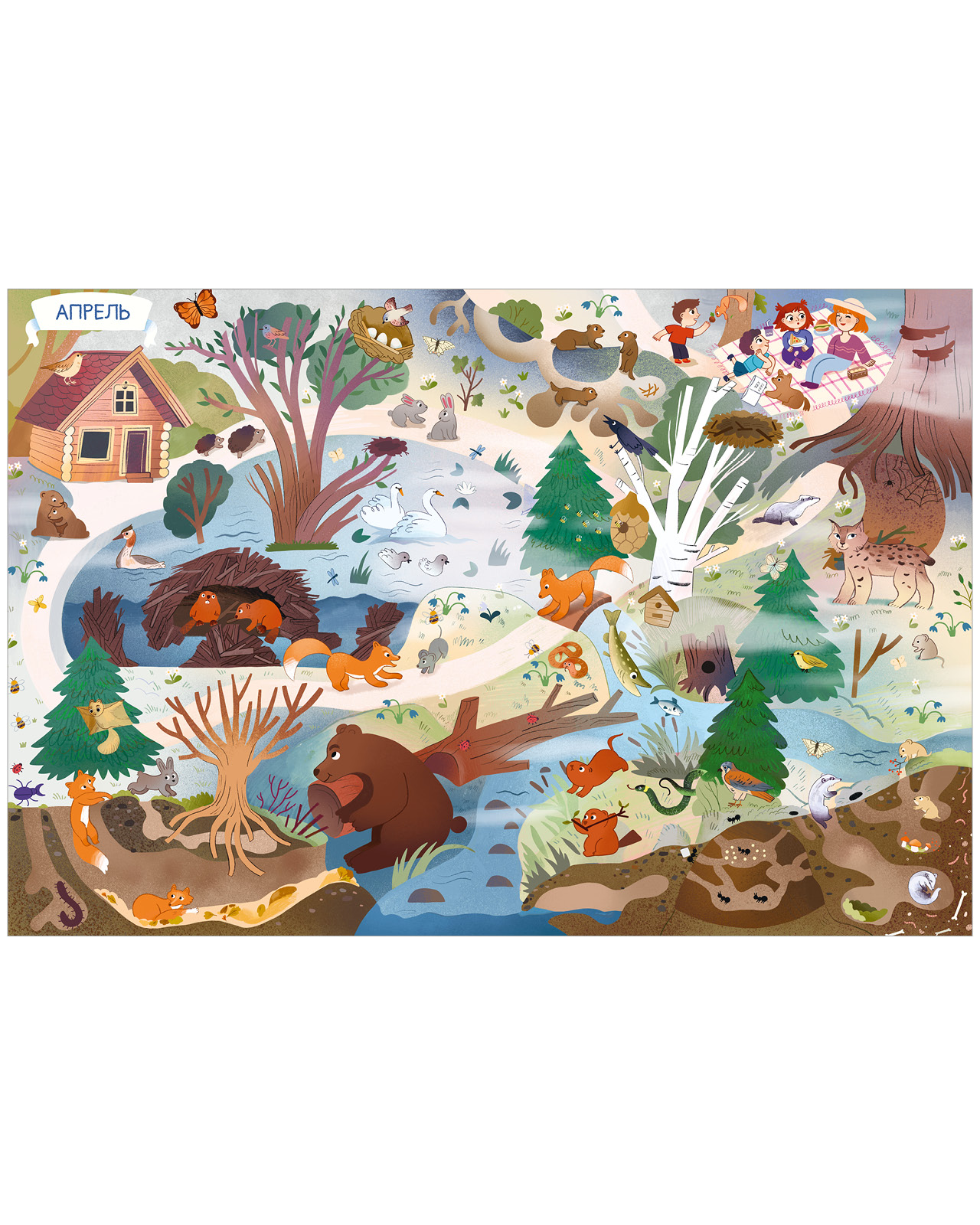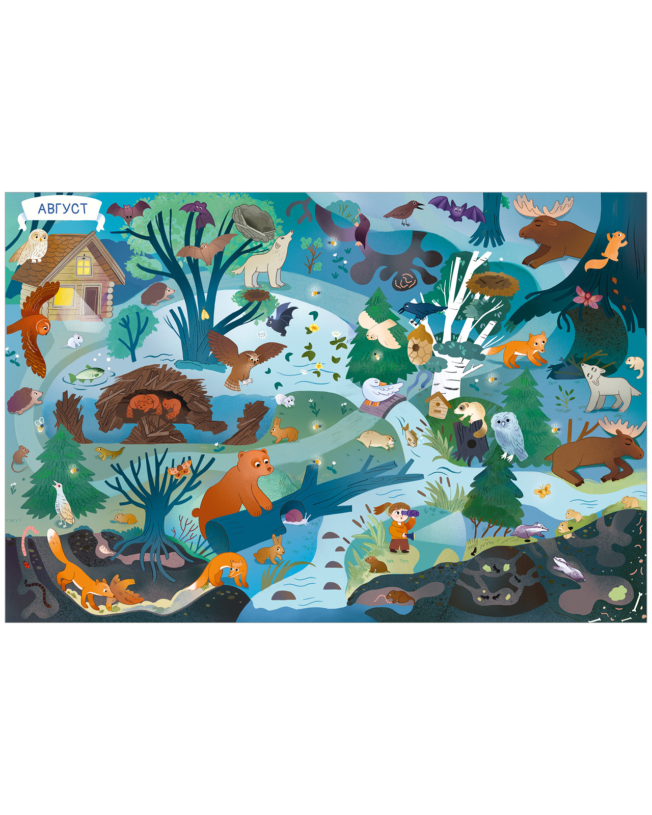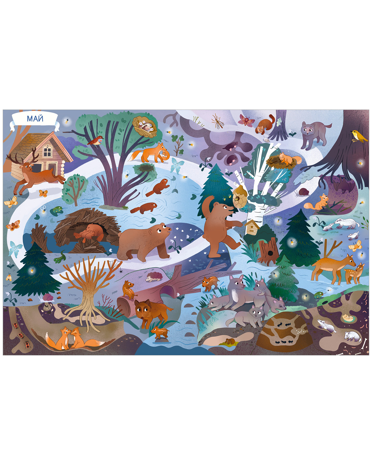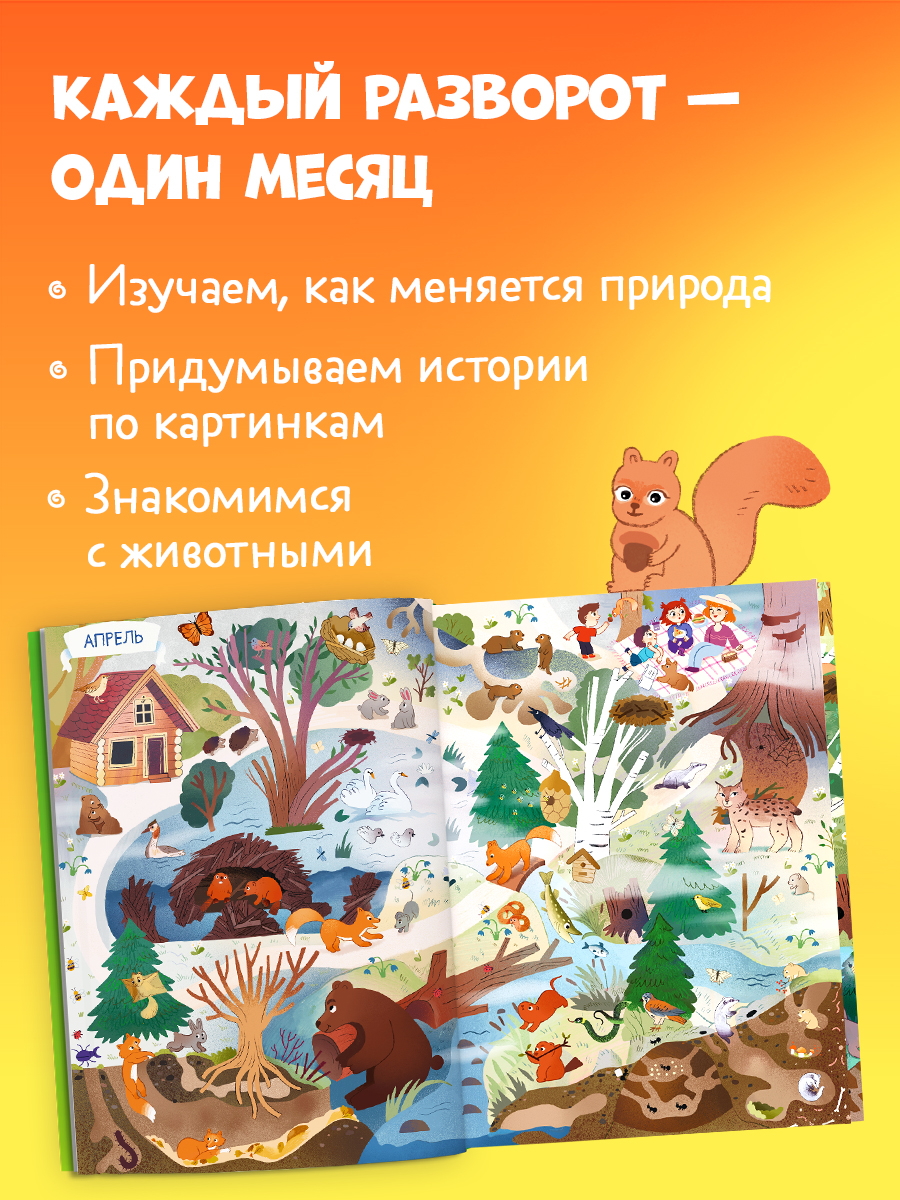 На страницах этой книжки для малышей ваш ребенок познакомится с обитателями леса и их привычками, узнает, как меняется природа каждый сезон, выучит названия месяцев и проверит свою внимательность. Благодаря крупному формату книжки для детей вы сможете рассмотреть каждую деталь на больших картинках.