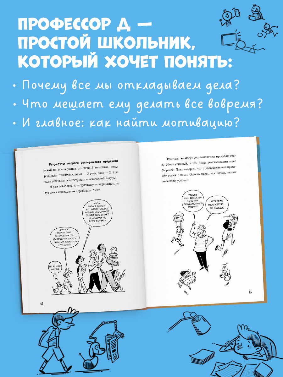 Что делать, если домашнее задание кажется скучнее просмотра сериалов, а сладости и видеоролики так и норовят отвлечь от важных дел? Школьник по имени Профессор Ди берется за увлекательное психологическое исследование. Почему так хочется отложить уроки на потом? Он проводит эксперименты над собственными родителями, доказывая, что все мы любим откладывать дела на потом.