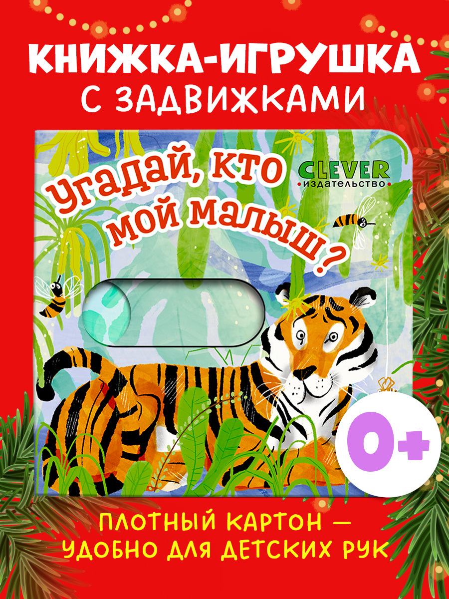 Книга детская «Угадай, кто мой малыш?», которую выпускает издательство Clever — отличный подарок ребенку 2 года по любому поводу. Это может быть первая книга малыша для чтения и игры вместе с родителями, книжка для малышей, которые любят играть в «ку-ку».